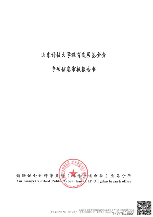 山东科技大学教育发展基金会本着“为捐赠人服务,为受助人服务”的原则,委托新联谊会计师事务所在对基金会2025年度财务报表实施审计的基础上,审核了基金会编制的《2025年度工作报告》中涉及的专项信息,全文见附件。请社会各界广大爱心人士、校友予以监督。