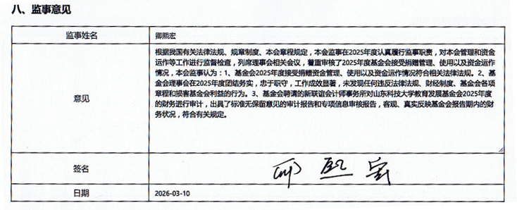 山东科技大学教育发展基金会在完善的内部管理规章下,2025年度对各类捐赠实施科学规范管理和有效使用,顺利完成2025年度年报,现将结果公布如下:一、基本信息