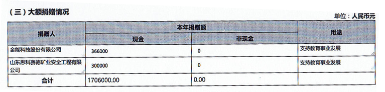二、公益事业(慈善活动)支出和管理费用情况(一)接受捐款情况表、大额捐赠收入情况
